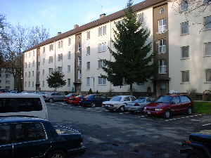 We live on the 3rd of 4 floors, which makes hauling groceries a lot of fun! We each get one parking spot, and it's a fight to the death for those of us who have two cars. |